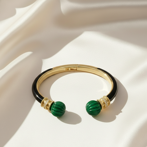 Black Emerald Imperiale Cabochon Gemstone Cuff Bracelet - 18kt Gold Plating
